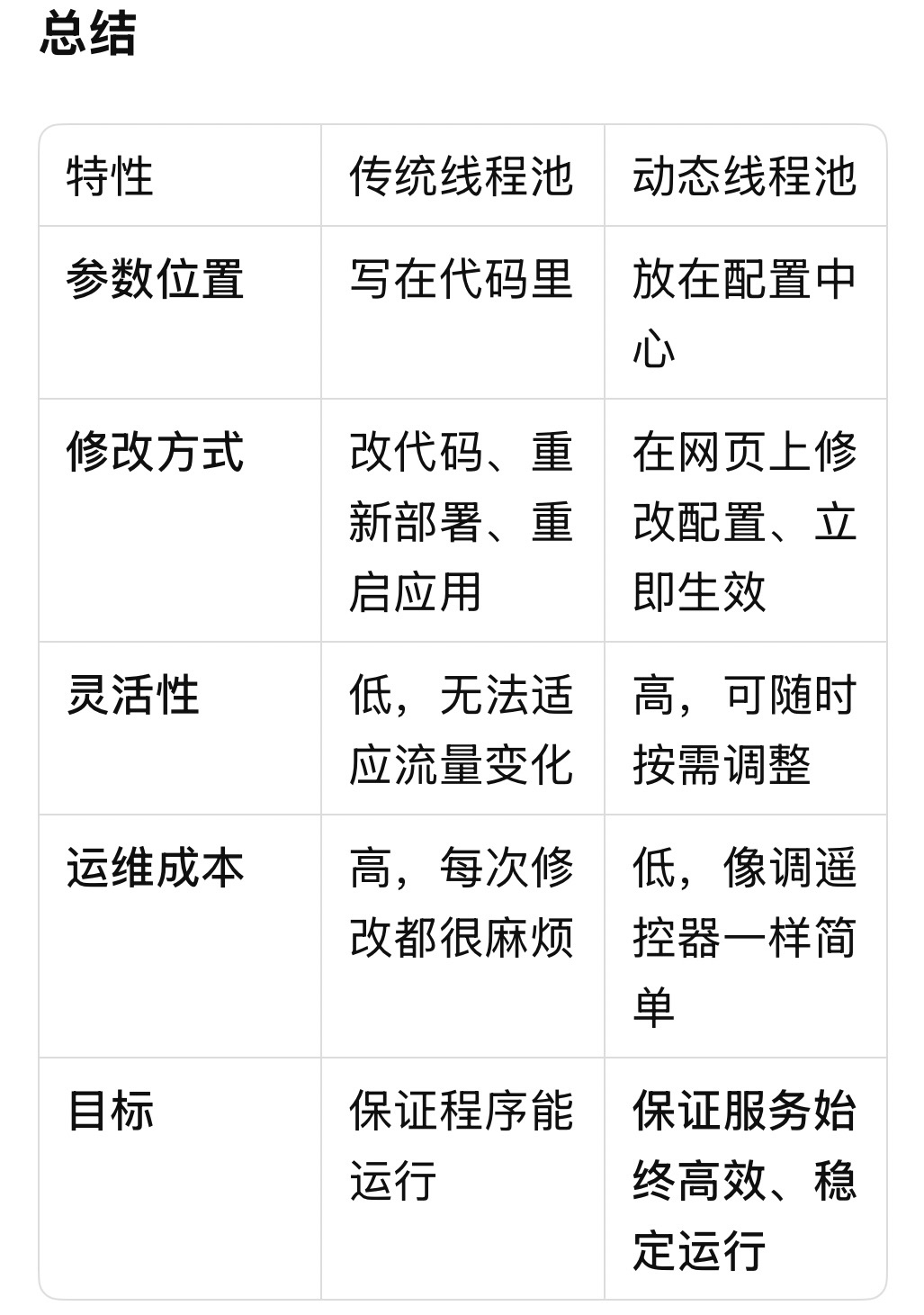 思路:把几个核心参数暴露出来,将线程池的参数从代码中迁移到分布式配置中心上,实现线程池参数可动态配置和即时生效,根据线上线程池的监控,需要时去调整核心参数