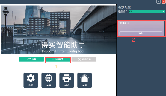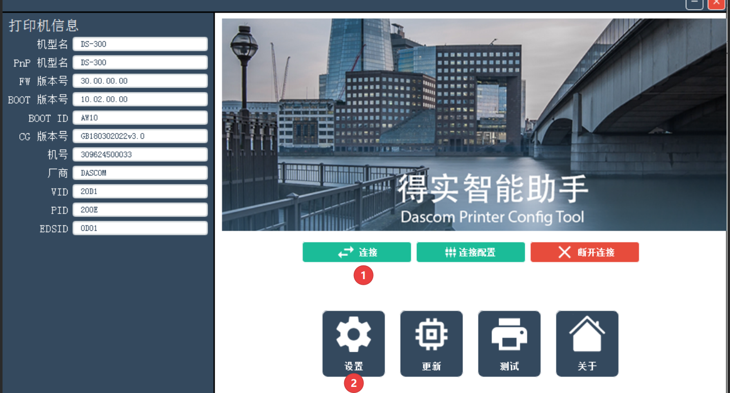 4.点击连接,查看是否和打印机型号一致,再点击设置。