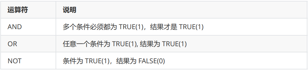 2. AND的优先级高于OR,在同时使用时,需要使用小括号()包裹优先执行的部分。
