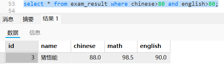a.查询英语成绩大于80分且语文成绩大于80分的同学: