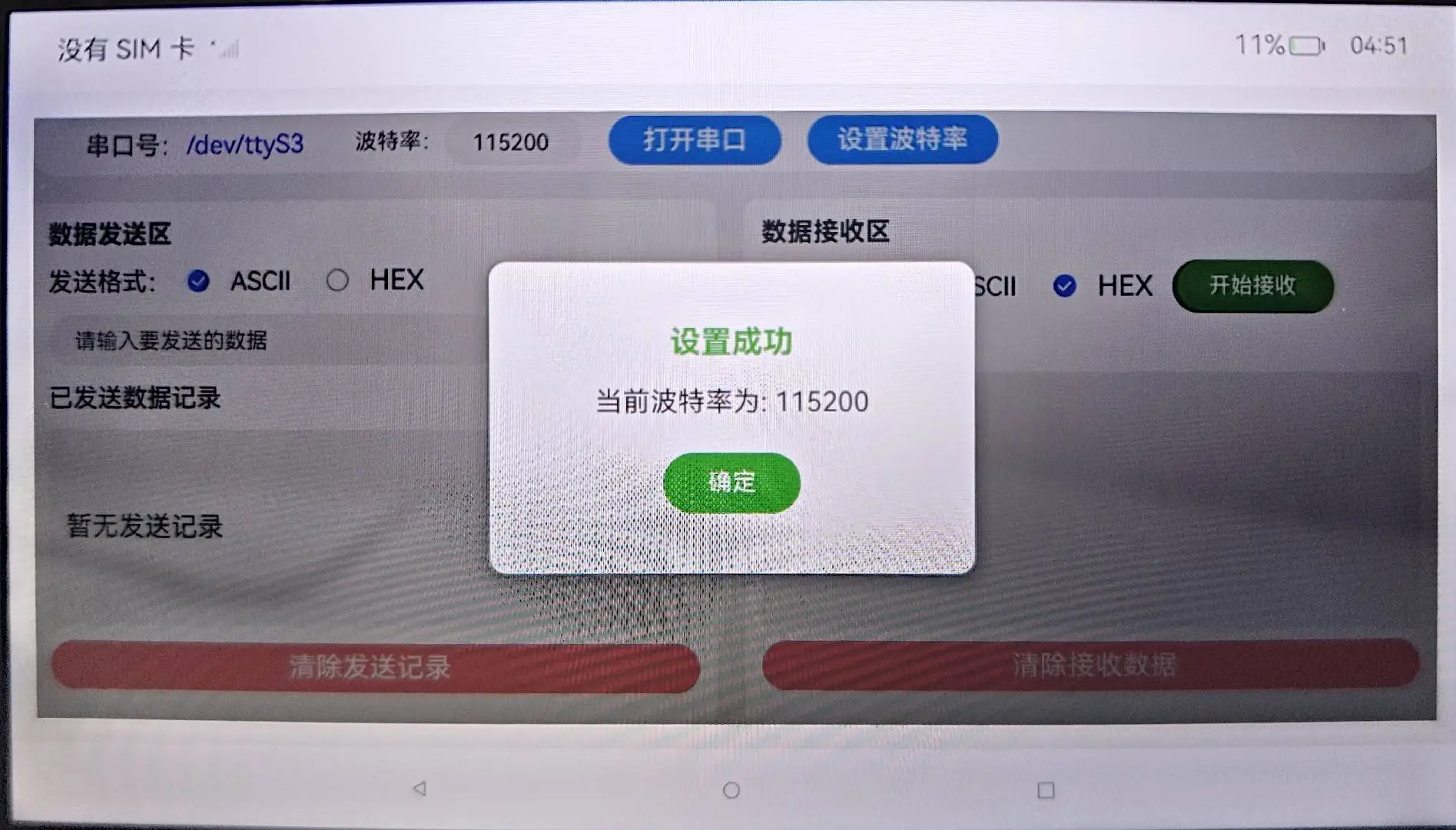 设置成功波特率后,会弹出设置成功的弹窗提示,点击确认即可。