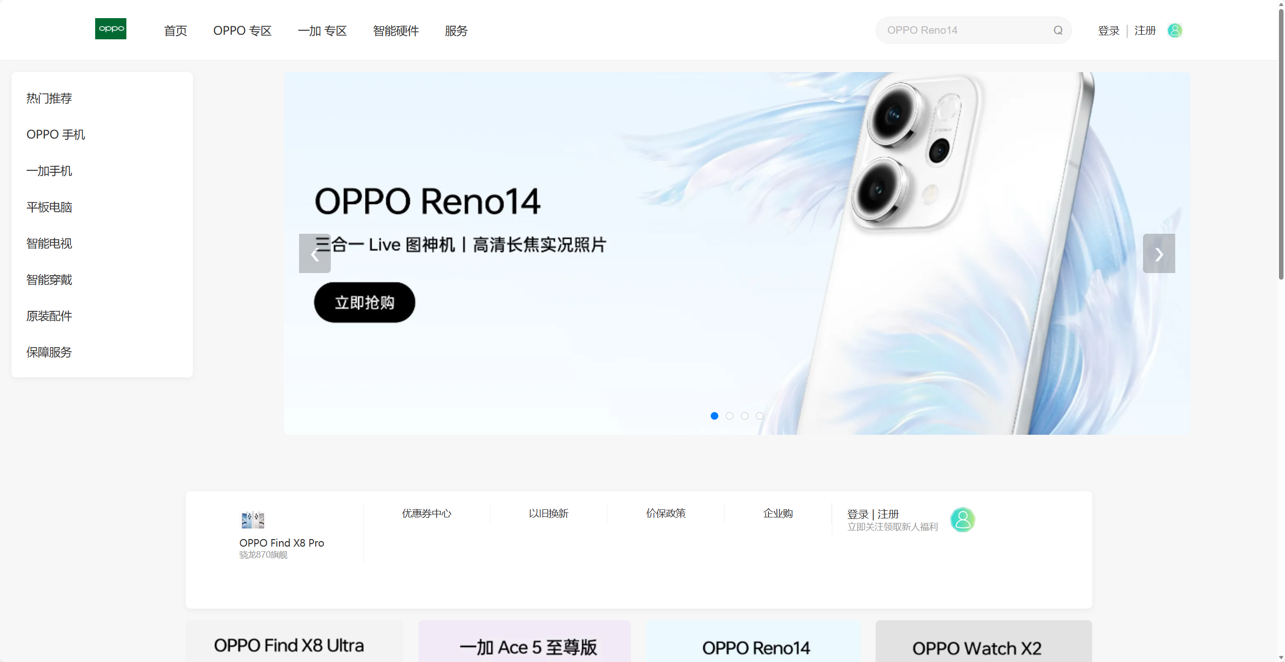 - **OPPO专区**:展示OPPO各系列产品,提供细分导航