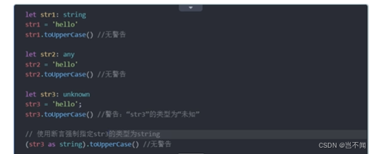 unknown不能将类型unknow分配给其他类型,强制在使用前进行类型检测。