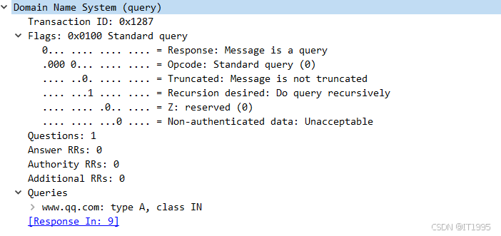 ① 事务 ID:0x1287(与包 7 的 ID 一致,关联请求)。