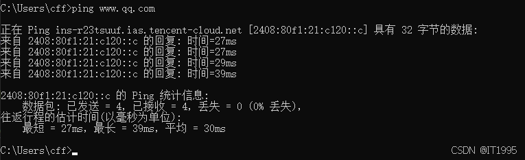 打开Wirshark抓包后。使用cmd程序ping下www.qq.com,如下图所示。