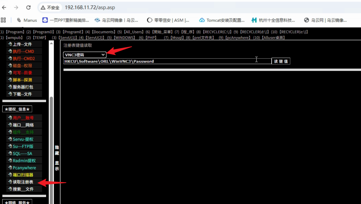 vnc的密码是保存在注册表里面,加上这里可以执行命令