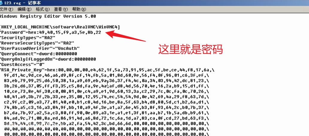 可以看出vnc的密码是保存在注册表,不是配置文件里面