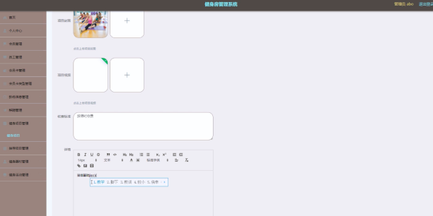 系统管理员可以对健身项目进行添加修改删除操作。界面如下图所示: