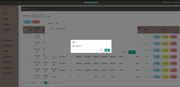 管理员可以审核会员申请的会员卡管理。界面如下图所示: