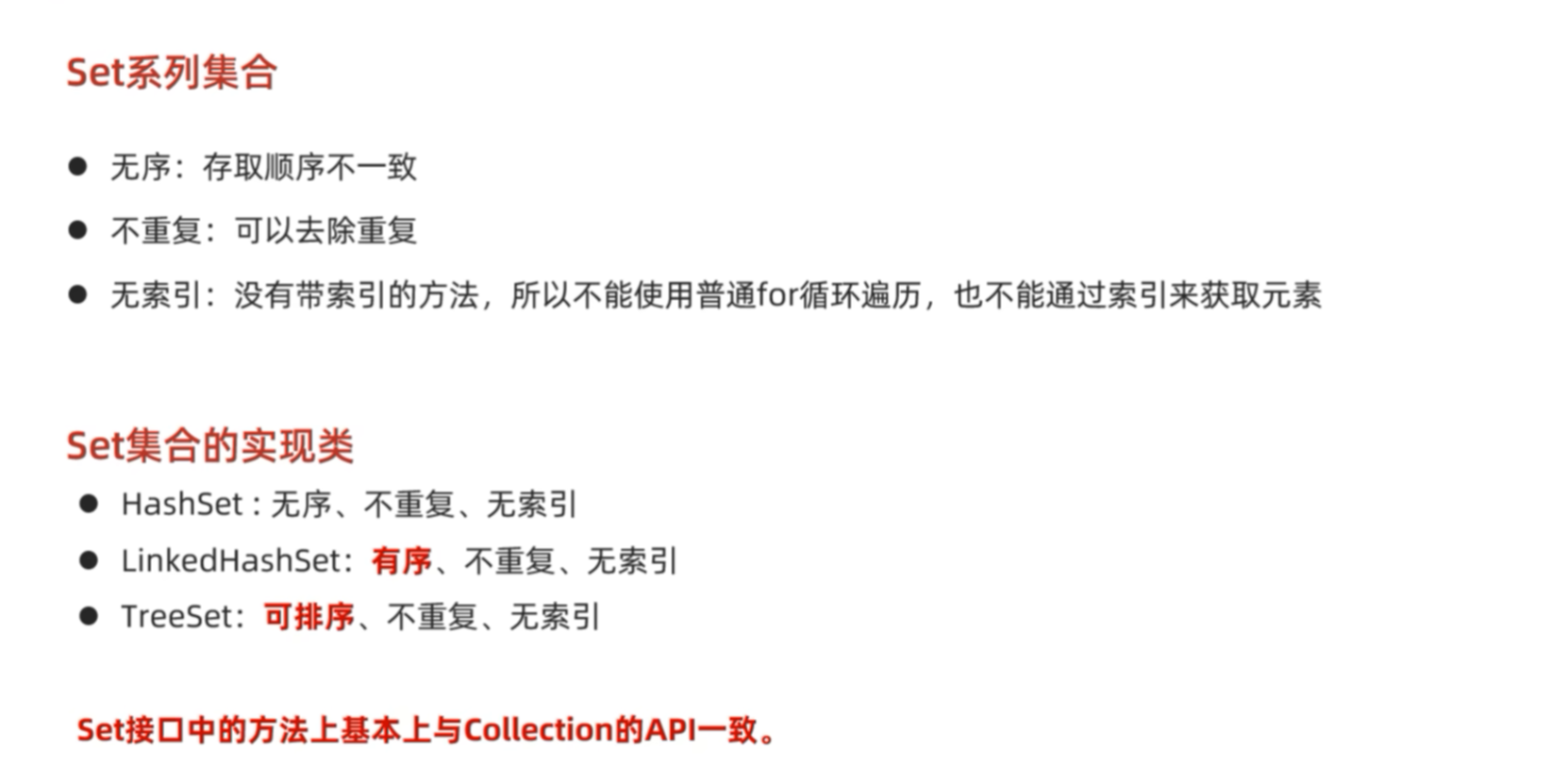 set也是一个接口,collection中的方法set系列也可以用。存取的顺序不一致指的是存的时候是ABC,取的顺序不一定是ABC或者CBA。