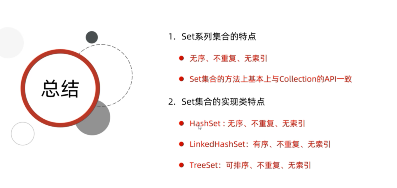 | 典型实现 | HashSet, TreeSet | ArrayList, LinkedList |