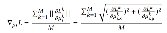 上面的公式中,M就是某个高斯椭球影响到的M张训练视图,这里的μ(x,y)和投影到2D平面的高斯椭球中心点。