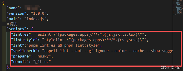 然后配合package.json这里的脚本使用,这里的脚本内容是
