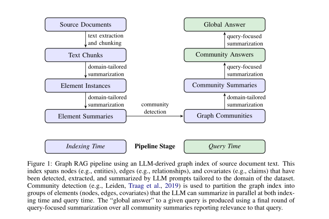 - 检索增强生成(RAG)的局限性:传统的 RAG 方法在处理针对整个文本语料库的全局性问题时存在不足,例如“数据集中的主要主题是什么?”这类问题。这是因为这类问题本质上是查询聚焦的摘要(Query-Focused Summarization, QFS)任务,而不是传统的显式检索任务。