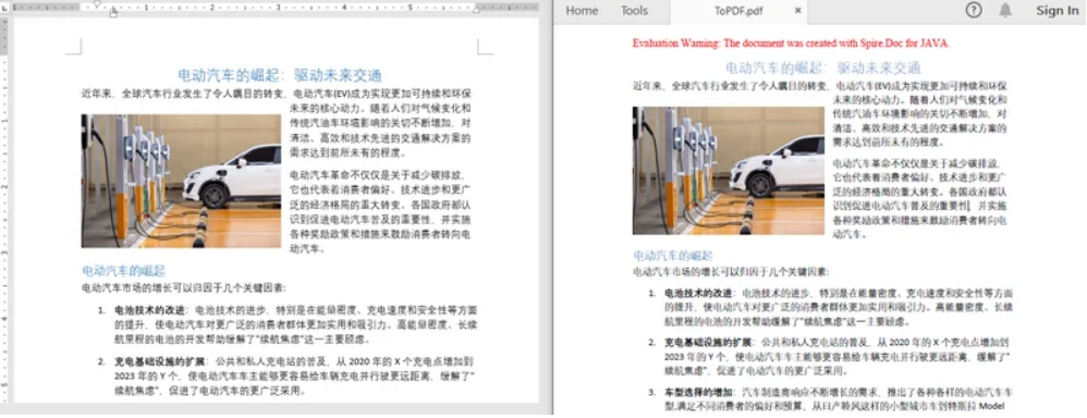 下图展示了输入RTF文档与转换生成的PDF文档: