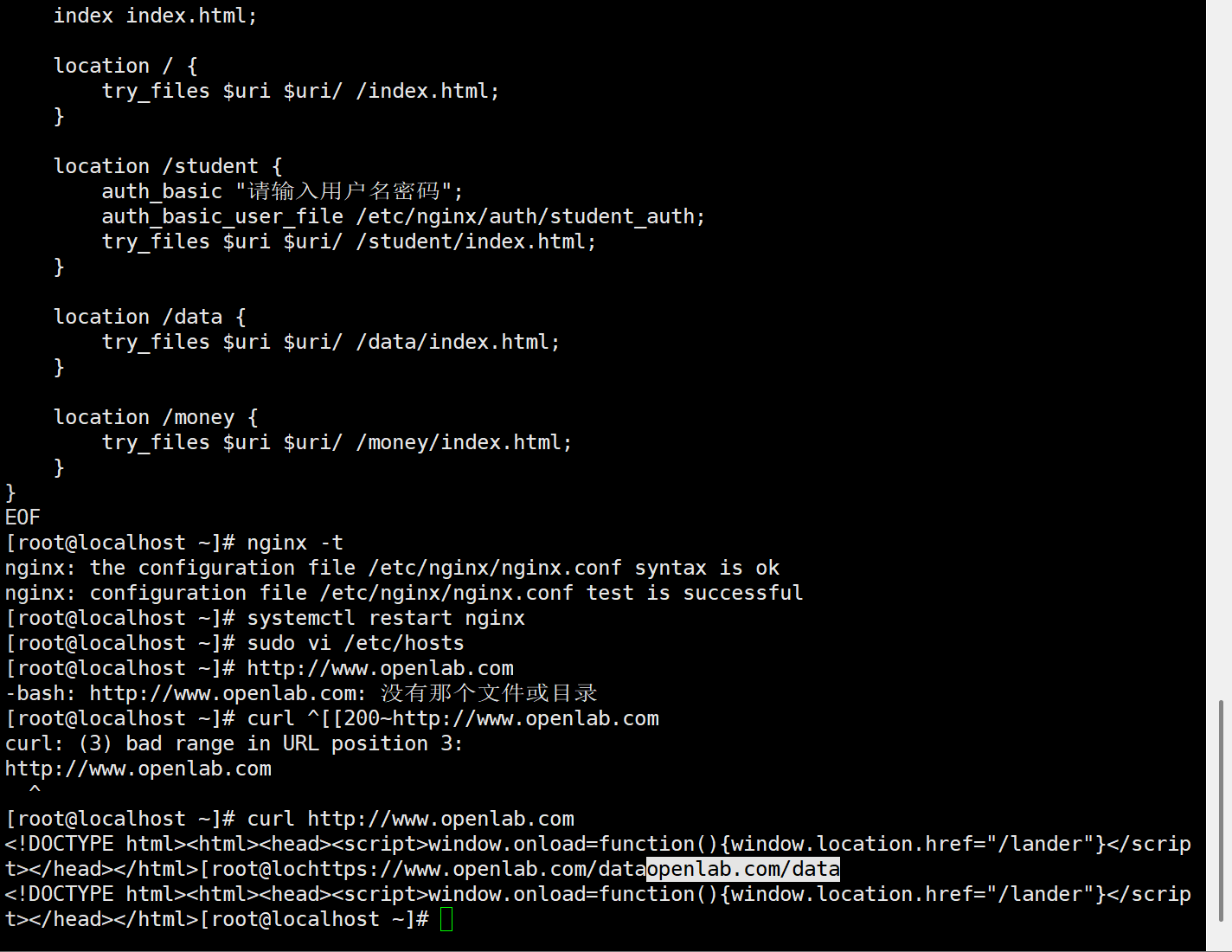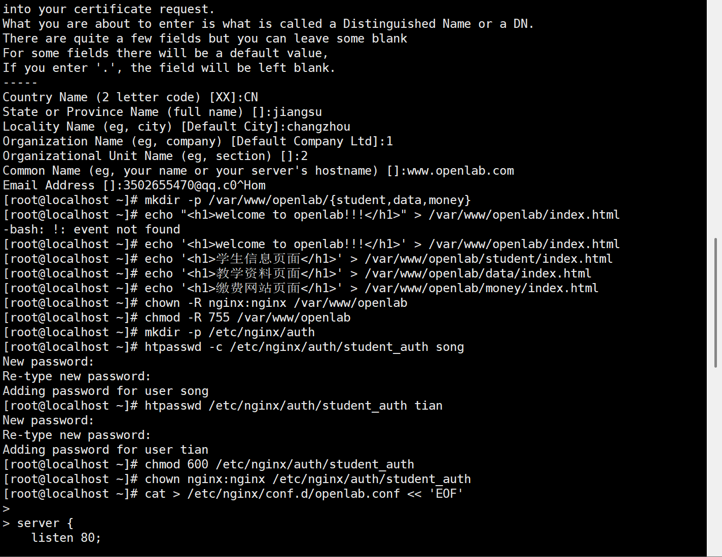mkdir -p /var/www/openlab/{student,data,money}# 编写根页面内容(www.openlab.com)