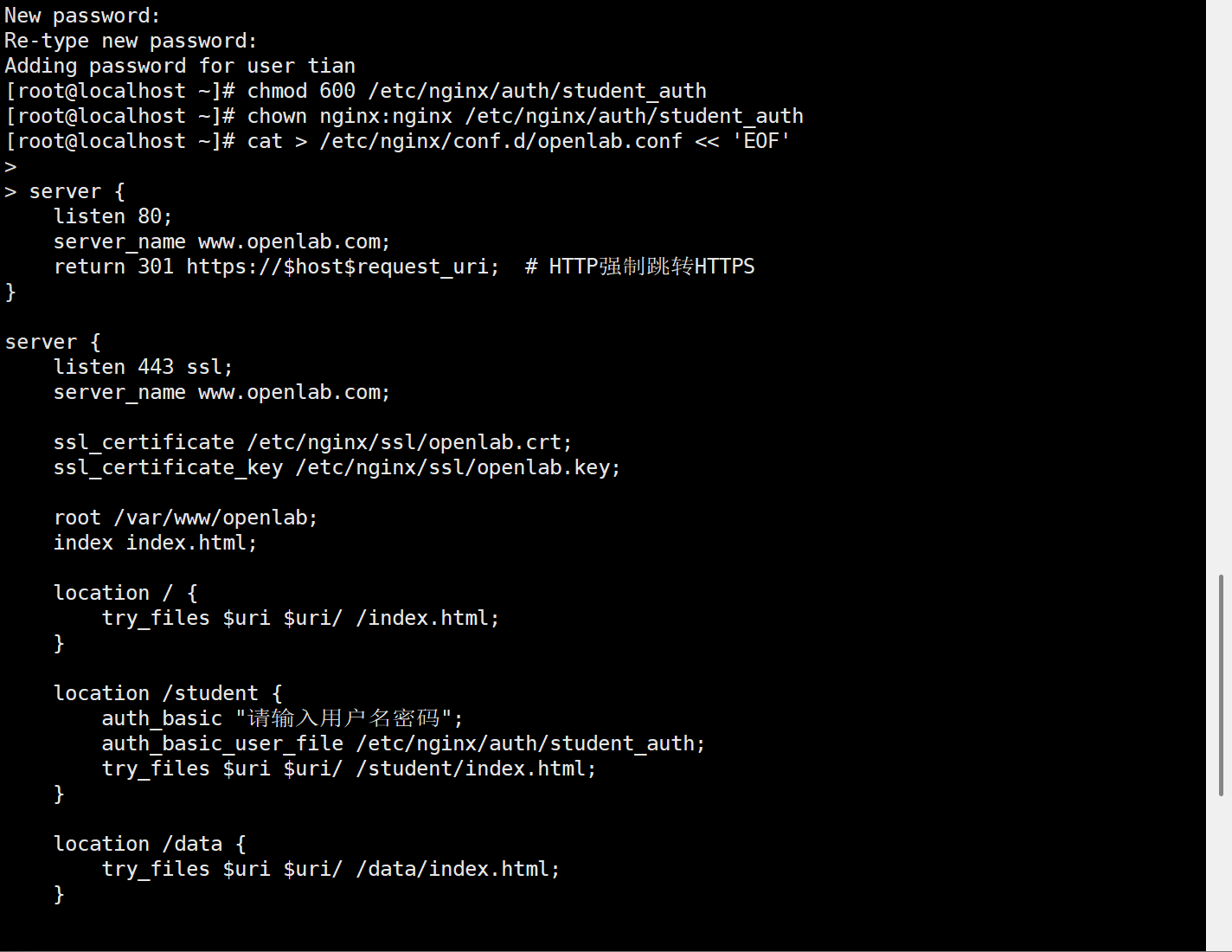 htpasswd /etc/nginx/auth/student_auth tian # 后续用户无需-c# 设置认证文件权限