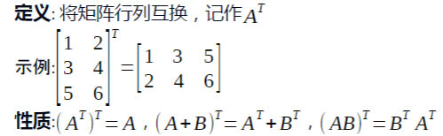 对称矩阵: 满足 A^T = A的方阵,对角线两侧元素对称相等。