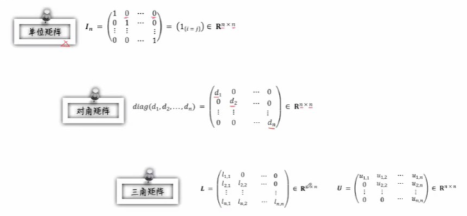 单位矩阵: n×n 方阵,对角线元素为 1,其余为 0,记作I n。