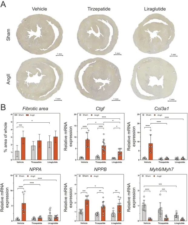 图 3. Tirzepatide对AngII诱导的心脏衰竭的保护作用[9]