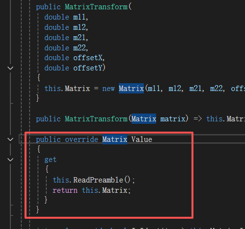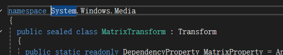 WPF 中可用的的矩阵类MatrixTransform,有一个Value属性,对应Matrix类型: