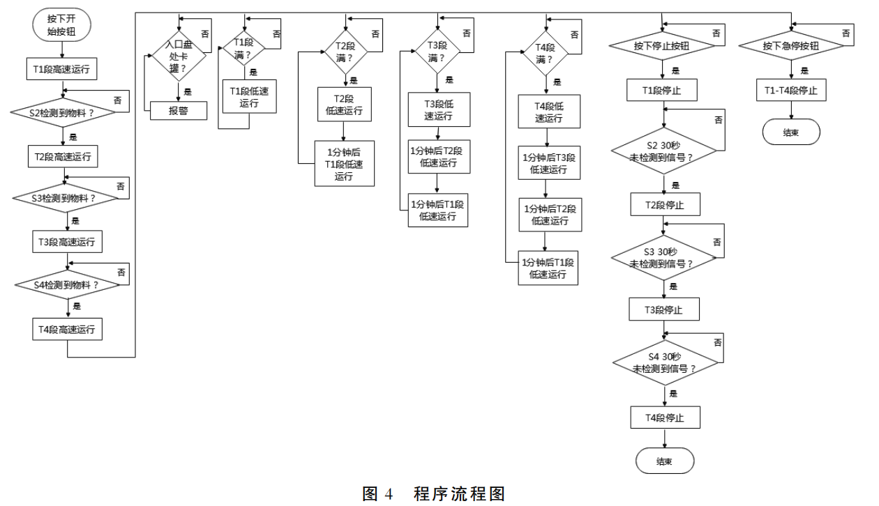 改进后的四级传送带运行控制系统流程图如图4所示。