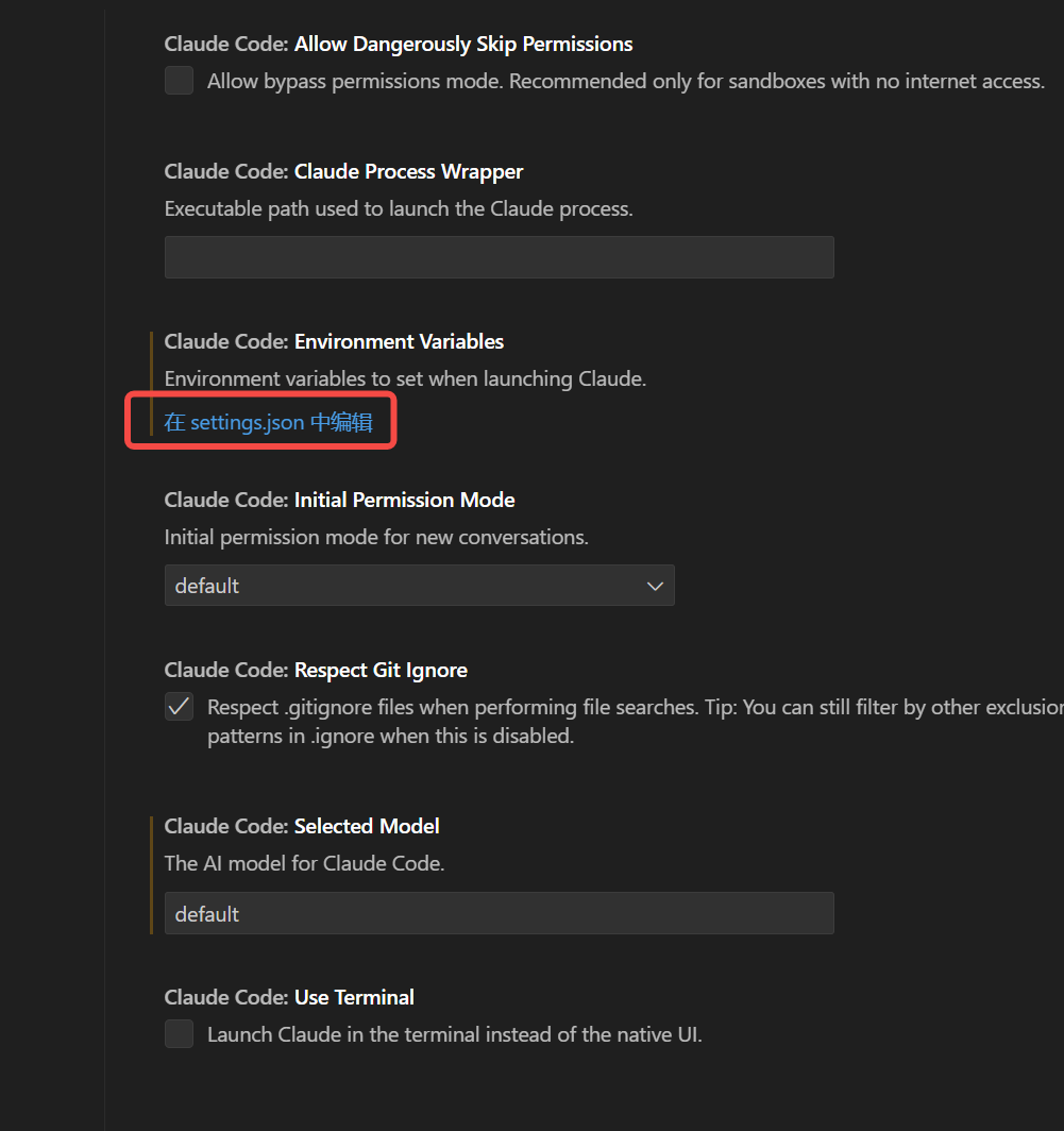 "claudeCode.environmentVariables": [{"name": "HTTPS_PROXY", "value":"http://127.0.0.1:7890"},{"name": "HTTP_PROXY", "value":"http://127.0.0.1:7890"},]