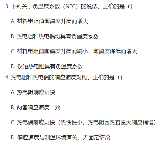 - 什么是负温度系数(NTC)?请举例说明具有该特性的传感器类型,并解释其在实际应用中(如家电、工业控制)的一个典型用途。