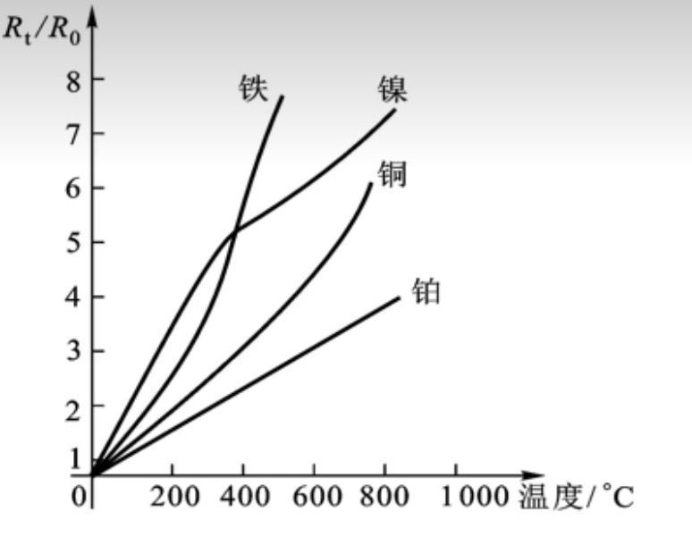 金属热电阻以铂、铜、镍等为核心材料,原理为电阻率随温度升高而增大(正温度系数)