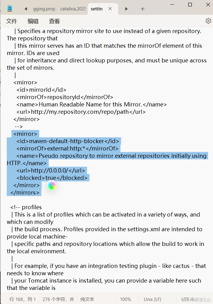 打开conf文件夹-》》settings.xml文件,把上面的配置放在蓝框部分