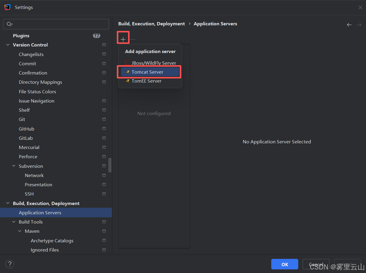 点击+号,选择tomcat local服务,然后选择 OK即可