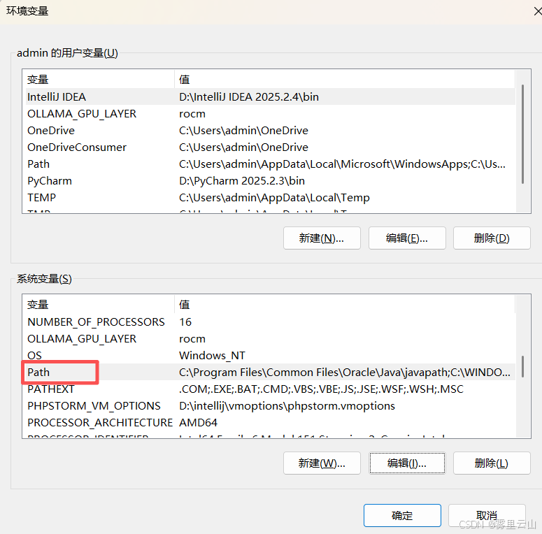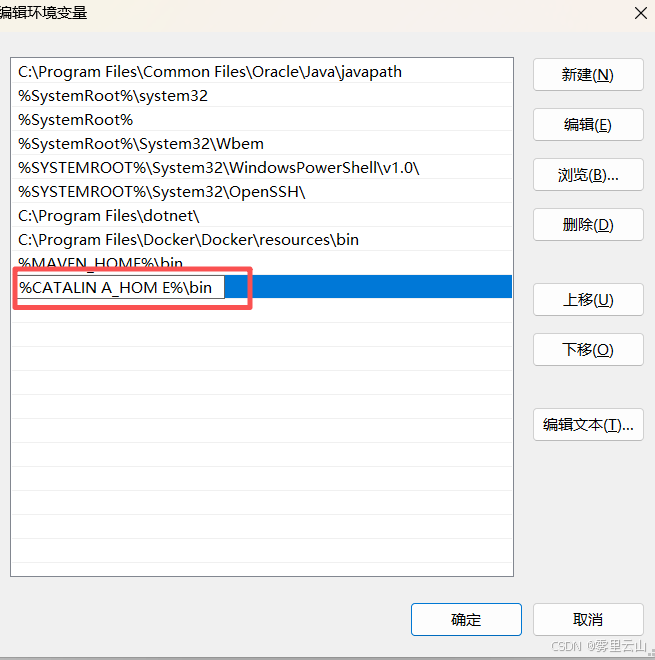 确定,然后点击path变量,新建一个%CATALIN A_HOM E%\bin