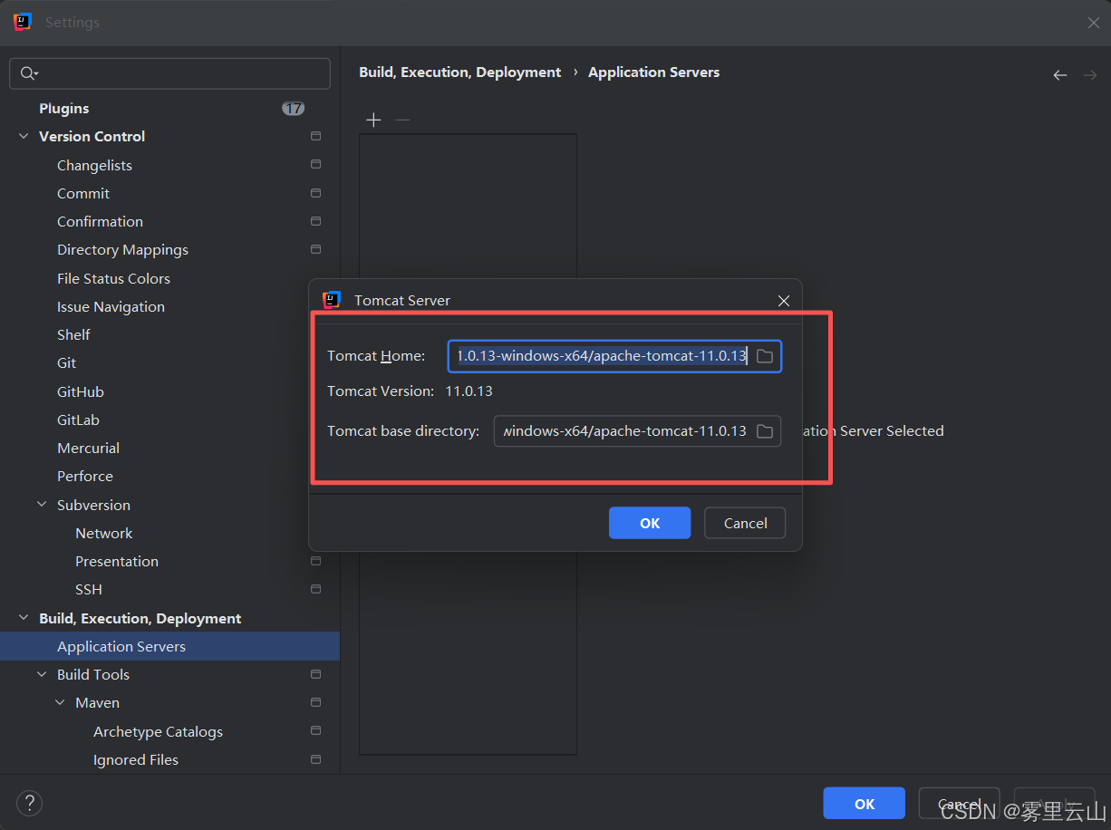 如果已经正确完成了上方的tomcat配置,会自动带出tomcat所在目录。