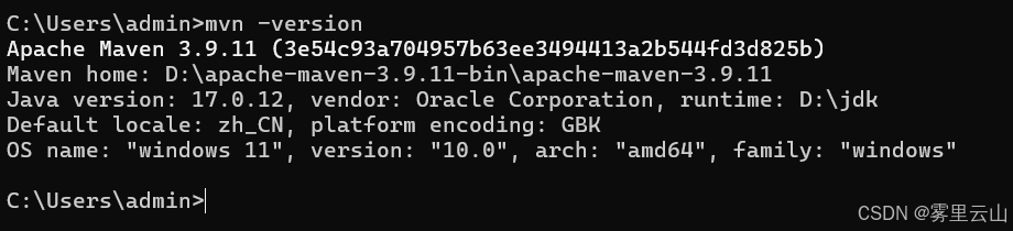 win+R,输入cmd,运行mvn -version,返回对应版本信息就已经配置成功
