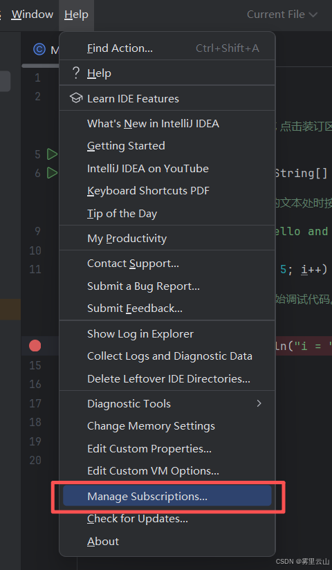 如果启动之后没有出现激活的页面,可以点击help-》Manage Subscriptions