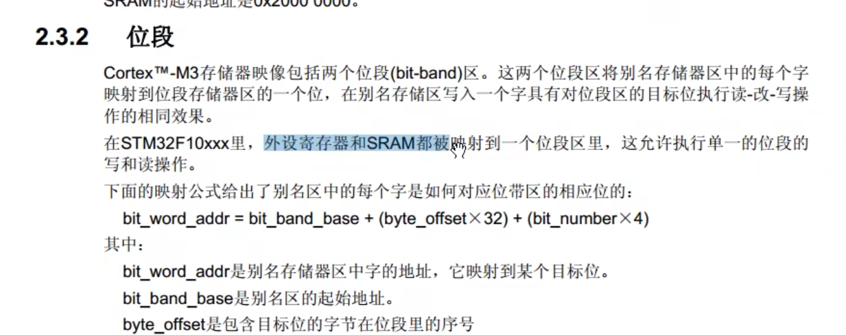 位段区域,就相当于位寻址。把stm32中所有的外设和寄存器都分配了地址。操作这个新的地址,就相当于操作其中的某一个位。因为32位地址有99%都是空的,即使把每一位都单独编码,也是可以的。