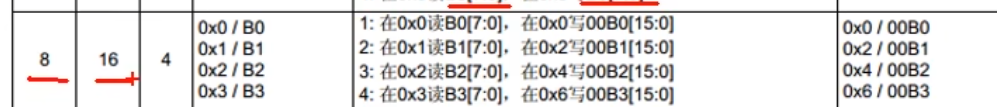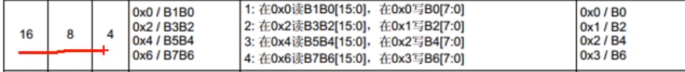 然后就是源端8位,目标16位那么就是在源端0的位置读取B0,在目标写入00B0。B1,B2,B3同理都是,00B1,00B2,00B3。