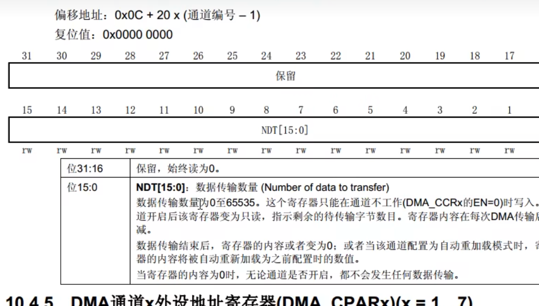 值得注意的是,写传输计数器时,必须要关闭DMA,不允许DMA再开启时写传输计数器,这是手册的规定。