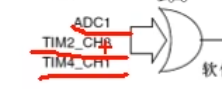 可以看到,有很多硬件触发源,那么该选择哪一个呢,这个是对应的外设是否开启了DMA来决定的,比如说要使用ADC1,那么会有一个对应的ADC_DMACmd,必须使用这个库函数,开启DMA的这一路输出,它才有效。如果三个都开启了,这里是一个或门,理论上三个都可以开启触发,但是我们通常只开启一个。