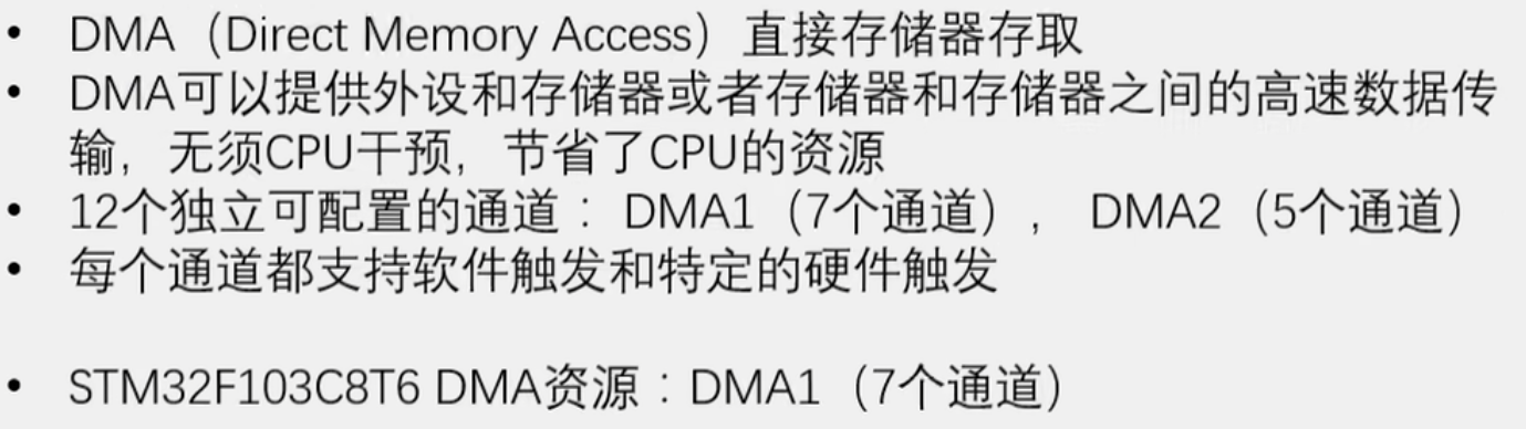 STM32F103C8T6的DMA(直接存储器存取) 是一个非常重要的外设,它可以在不占用CPU的情况下实现外设和存储器之间、存储器与存储器之间的高速数据传输。让我详细为你解释: