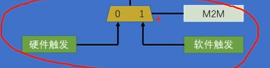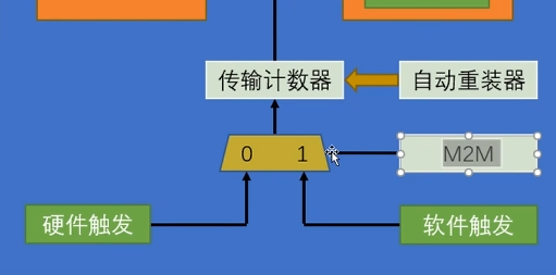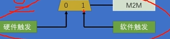 然后软件触发后面跟个MEM2MEM的意思应该是当M2M位等于1时选择软件触发。