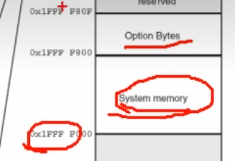 0x1FFF开始的系统存储器和选项字节,是在ROM区的最后面。
