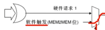 他把EN位画在了数据选择器的侧面,一般数据选择器的层面是输入选择控制位。难到这里的意思是EN给1选择硬件触发,EN给0选择软件触发吗?显然不是,而且在左面这里写的是软件触发MEM2MEM位。
