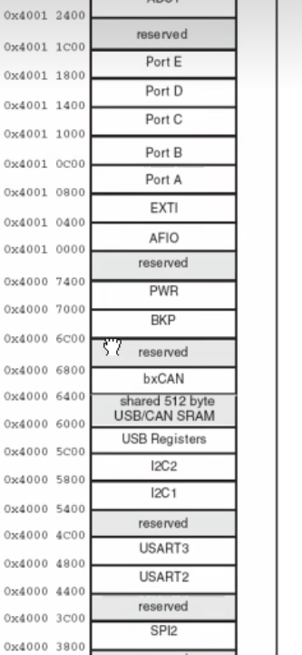 比如TIM2的是0x4000 0000,TIM3的地址是0x4000 0400。