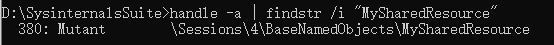 D:\SysinternalsSuite>handle -a | findstr /i "MySharedResource"