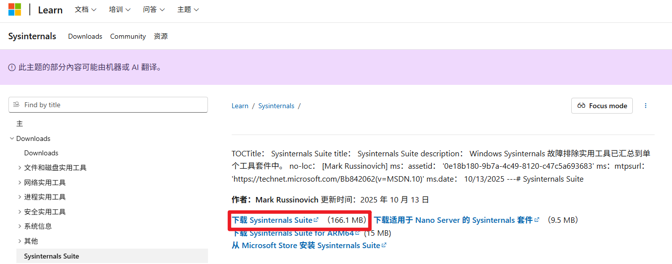 下载SysinternalsSuite,我安装在了D:\SysinternalsSuite目录下