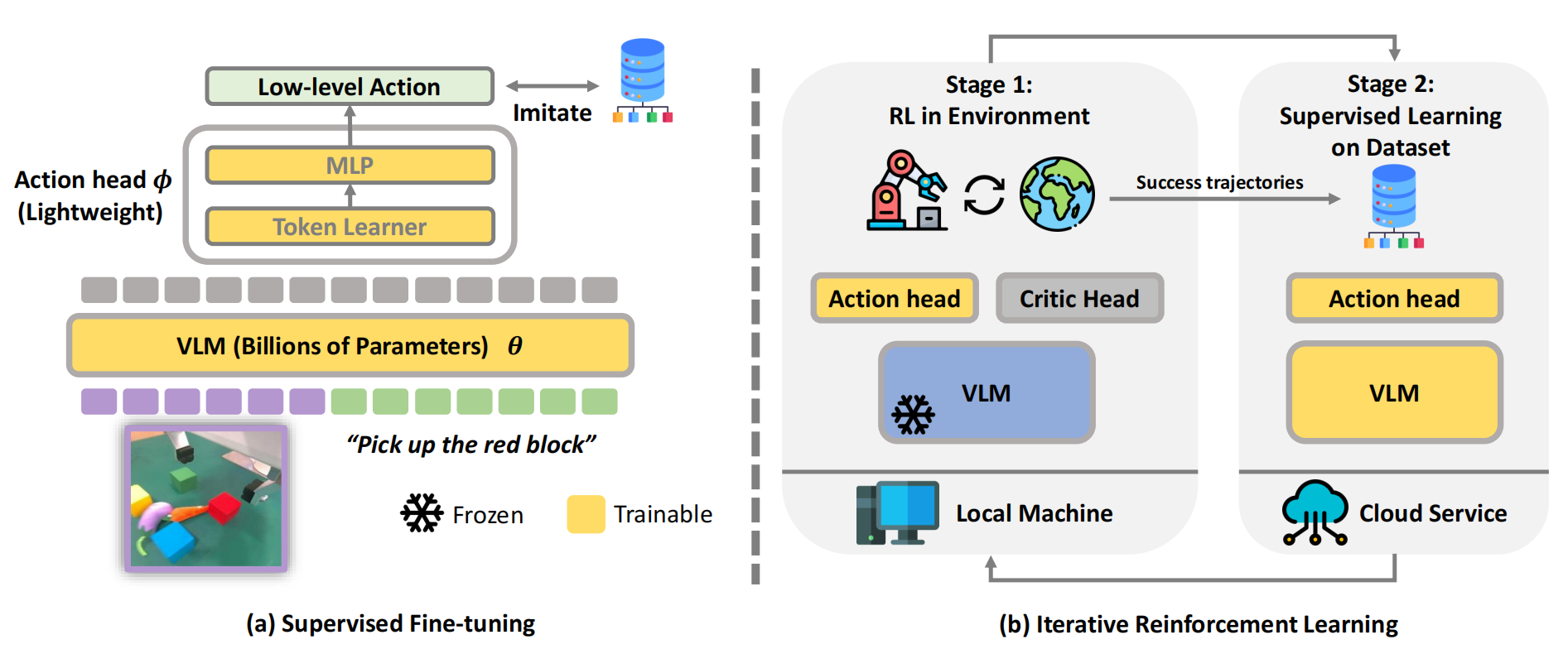 如πRL论文所述,VLAs 的训练方法遵循如图1所示的标准预训练与有监督微调(SFT)范式