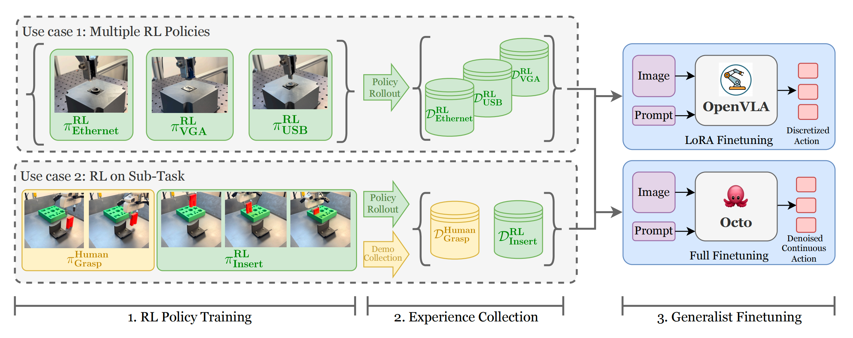 - 《知识蒸馏RLDG:先基于精密任务训练RL策略(HIL-SERL),得到的RL数据去微调OpenVLA,最终效果超越人类演示数据》
