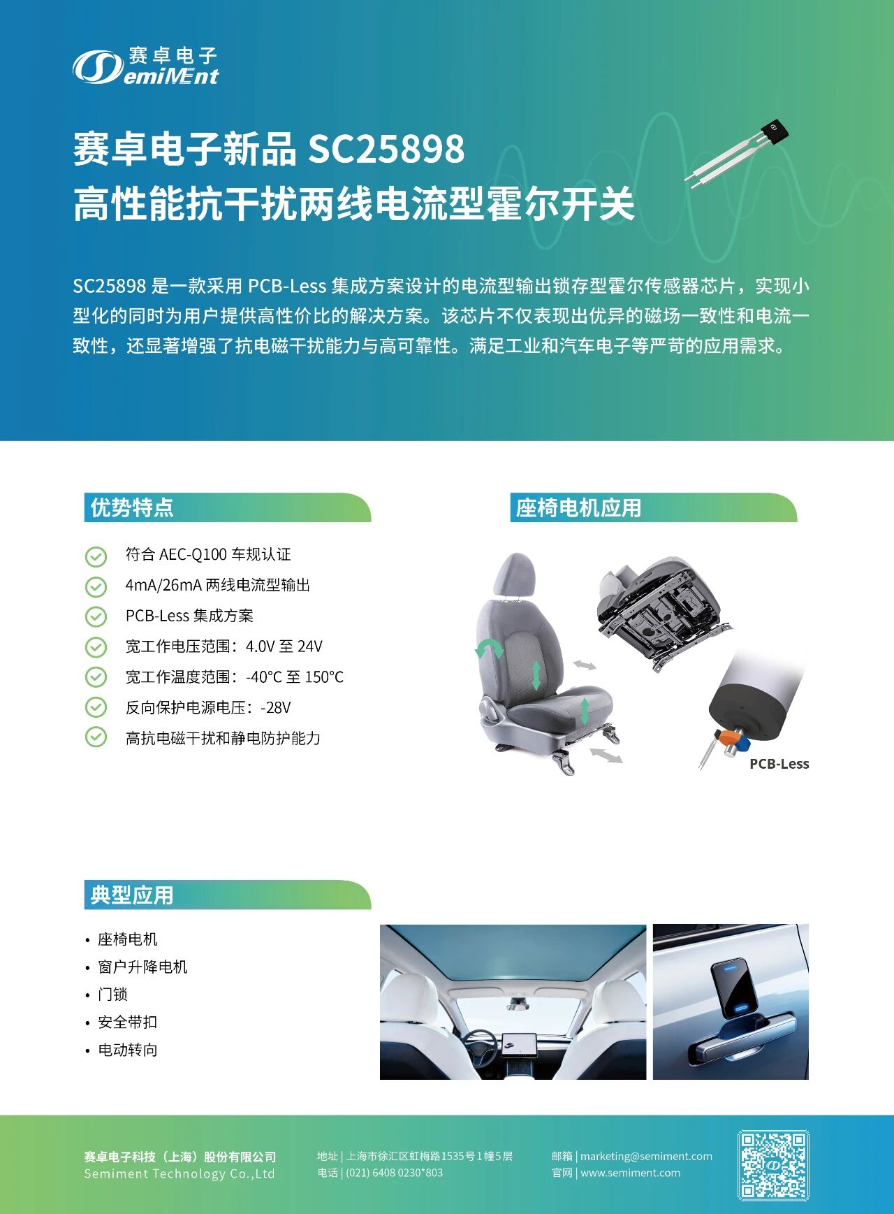 高性能抗干扰两线电流型霍尔开关SC25898 | 赛卓电子重磅新品