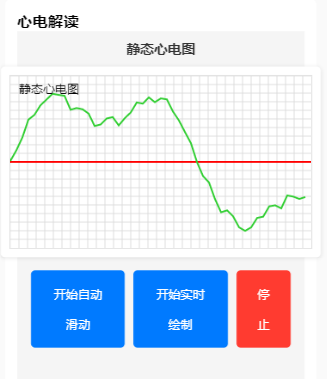 <template><view class="ecg-container"><view class="ecg-header"><text class="ecg-title">{{ currentModeText }}</text></view><view class="ecg-canvas-container"><canvas canvas-id="ecgCanvas" class="ecg-canvas":style="{ width: canvasWidth + 'px', height: canvasHeight + 'px' }"></canvas></view><view class="ecg-controls"><button class="control-btn" @tap="startScrollMode":disabled="isScrolling">开始自动滑动</button><button class="control-btn" @tap="startRefreshMode":disabled="isRefreshing">开始实时绘制</button><button class="control-btn stop-btn" @tap="stopAll">停止</button></view></view>